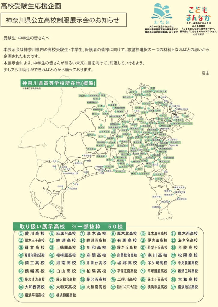 高校受験生応援企画2025「神奈川県公立高校制服展示会のお知らせ」(イオン大和鶴間店3F)