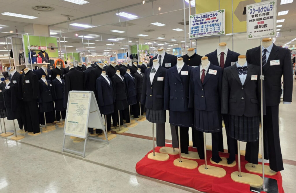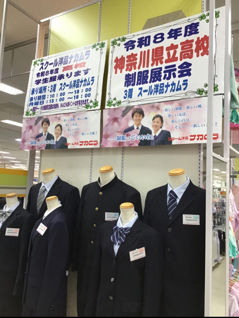 イオン大和鶴間店3階にて、神奈川県公立高校制服展示会を開催中です。